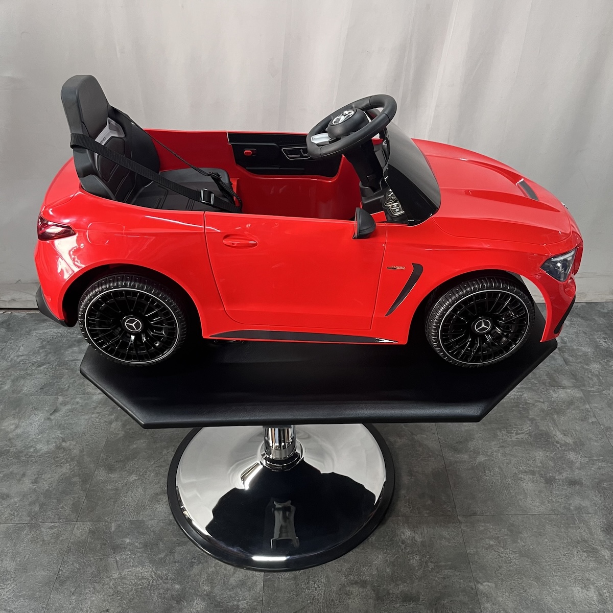 本物のベンツを思わせる細部までこだわった、車型の子供用セットイスです。
