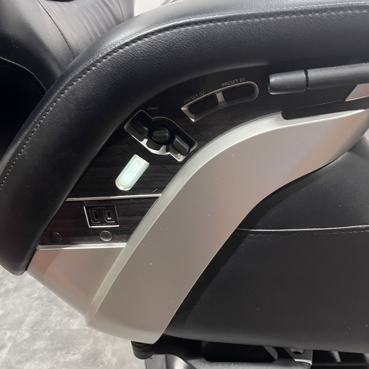 ステップとレッグレストが一体となって可動。ほぼ水平位置まで上昇することで、足元までしっかりサポートします。