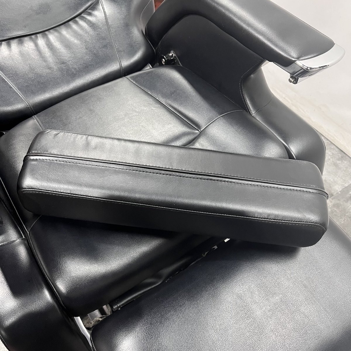 シートの張替え・メッキ部分の再メッキ・塗装部分の再塗装・機械部分のメンテナンスを行いますので、サロン様オリジナルの椅子に仕上がります。塗装色はアイボリー・白・黒からお選びいただけます。(その他の色については、一度お問い合わせください。)※納期は約3週間かかります。
