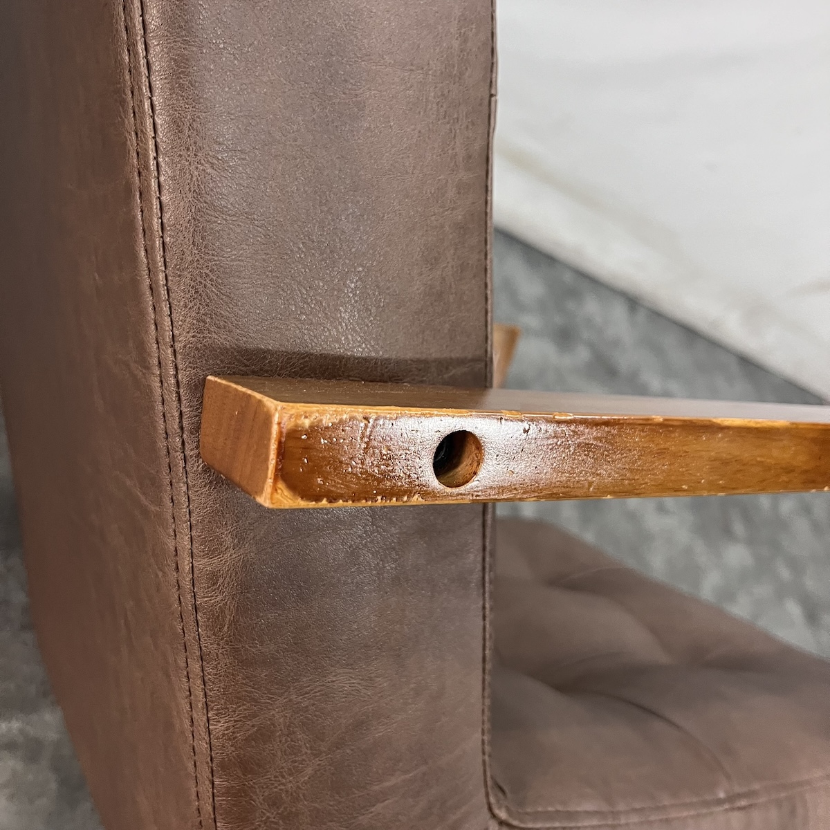【商品状態】必ず詳細写真をご確認いただいてからご購入ください。使用年数なりの使用感がございます。 レザー:国産合皮レザーへ張替済み ひじ(木製)部分:木の欠け ポンプ:付属なし(上部のみの販売) 対応:ビューティガレージ製ベースに適合 ※こちらの商品は肘部分が木製となっているため、商品によって色合いや木目などが異なります。必ず詳細写真をご確認頂いてからご購入ください。 ■全体サイズ:幅58 × 奥行95 × 高さ83-94cm