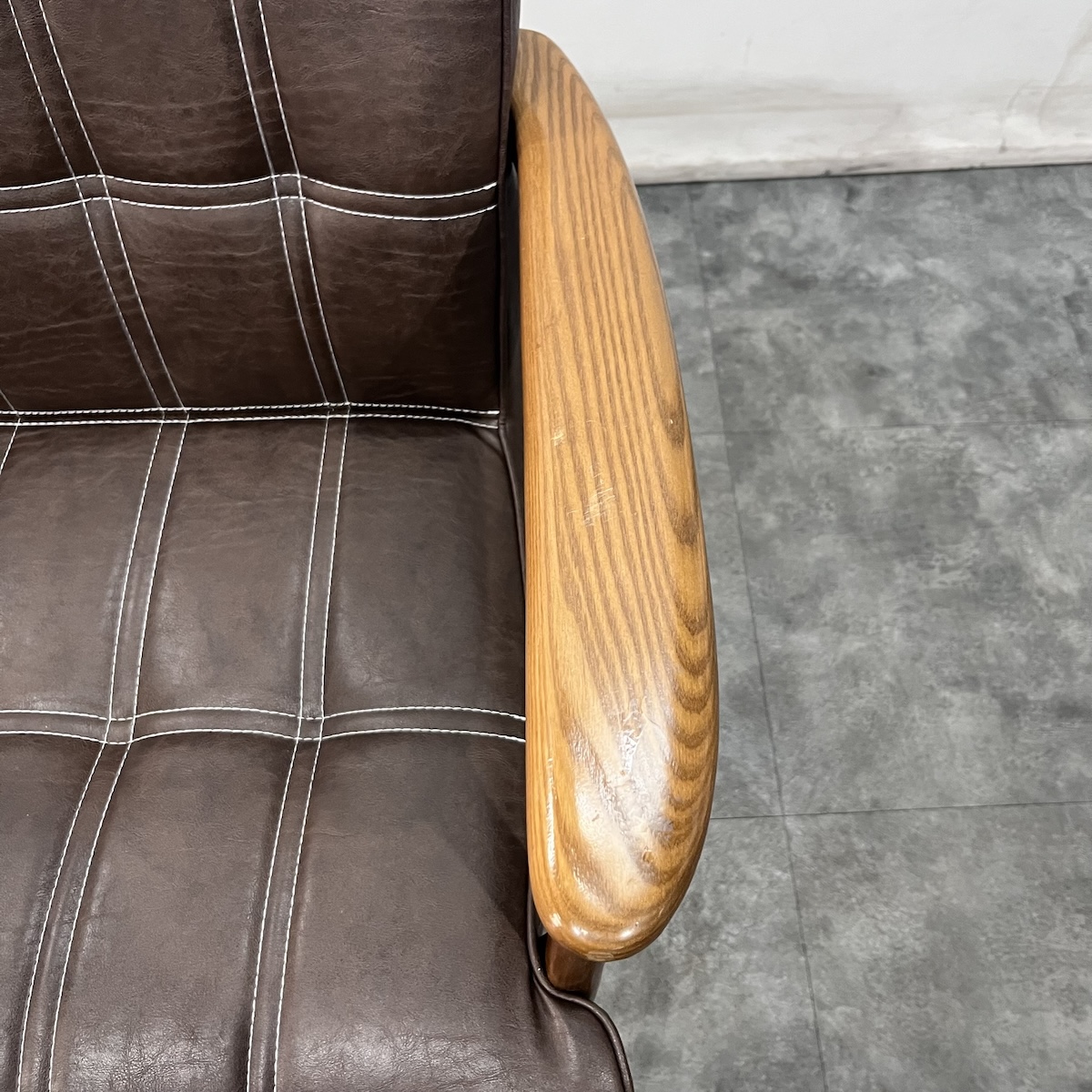 アームレストには生産量の極めて少ないトネリコの無垢良材を使用。