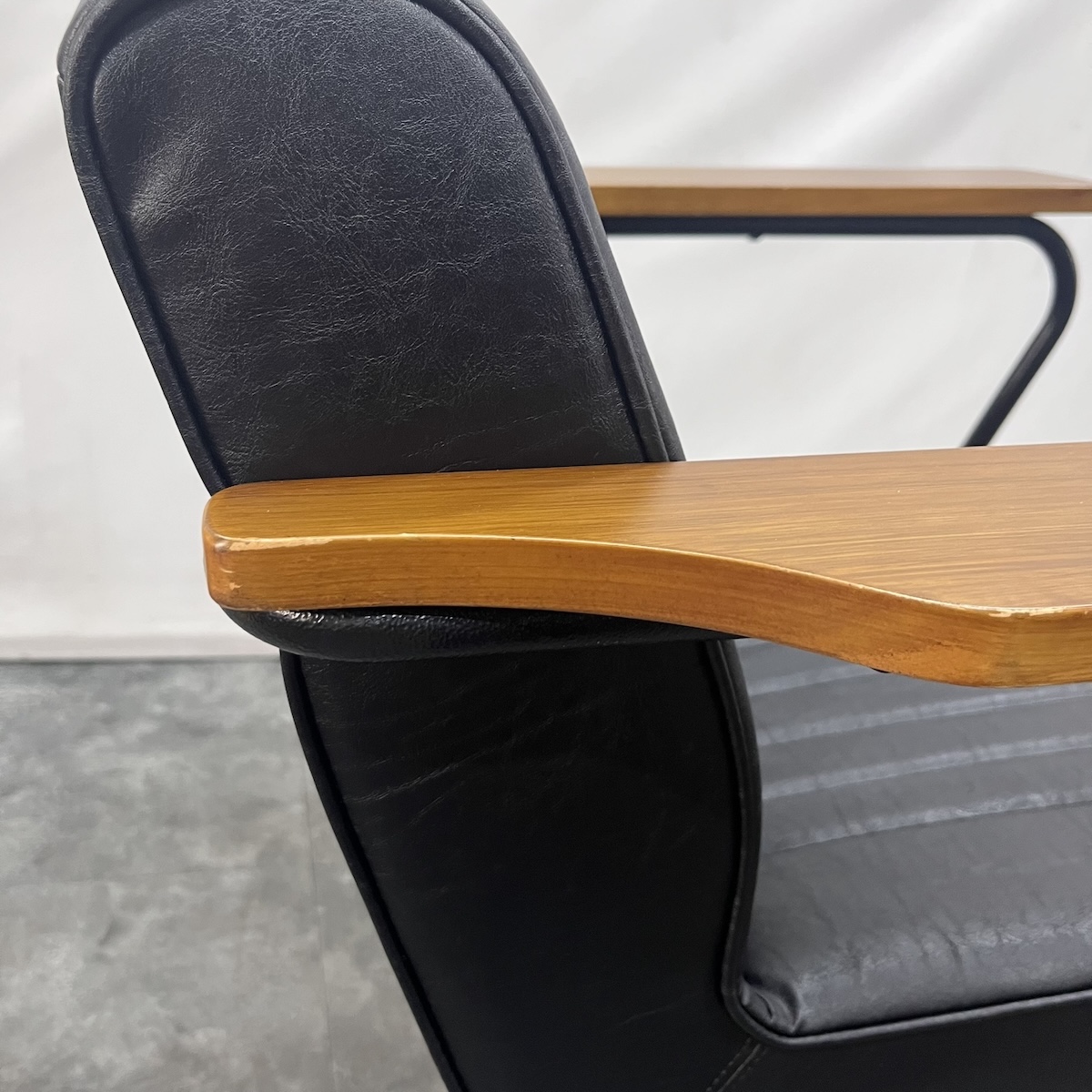 【商品状態】必ず詳細写真をご確認いただいてからご購入ください。使用年数なりの使用感がございます。 レザー:国産合皮レザーへ張替済み ひじ(木製)部分:木の欠け ポンプ:付属なし(上部のみの販売) 対応:ビューティガレージ製ベースに適合 ※こちらの商品は肘部分が木製となっているため、商品によって色合いや木目などが異なります。必ず詳細写真をご確認頂いてからご購入ください。 ■全体サイズ:幅66 × 奥行100 × 高さ78-88cm