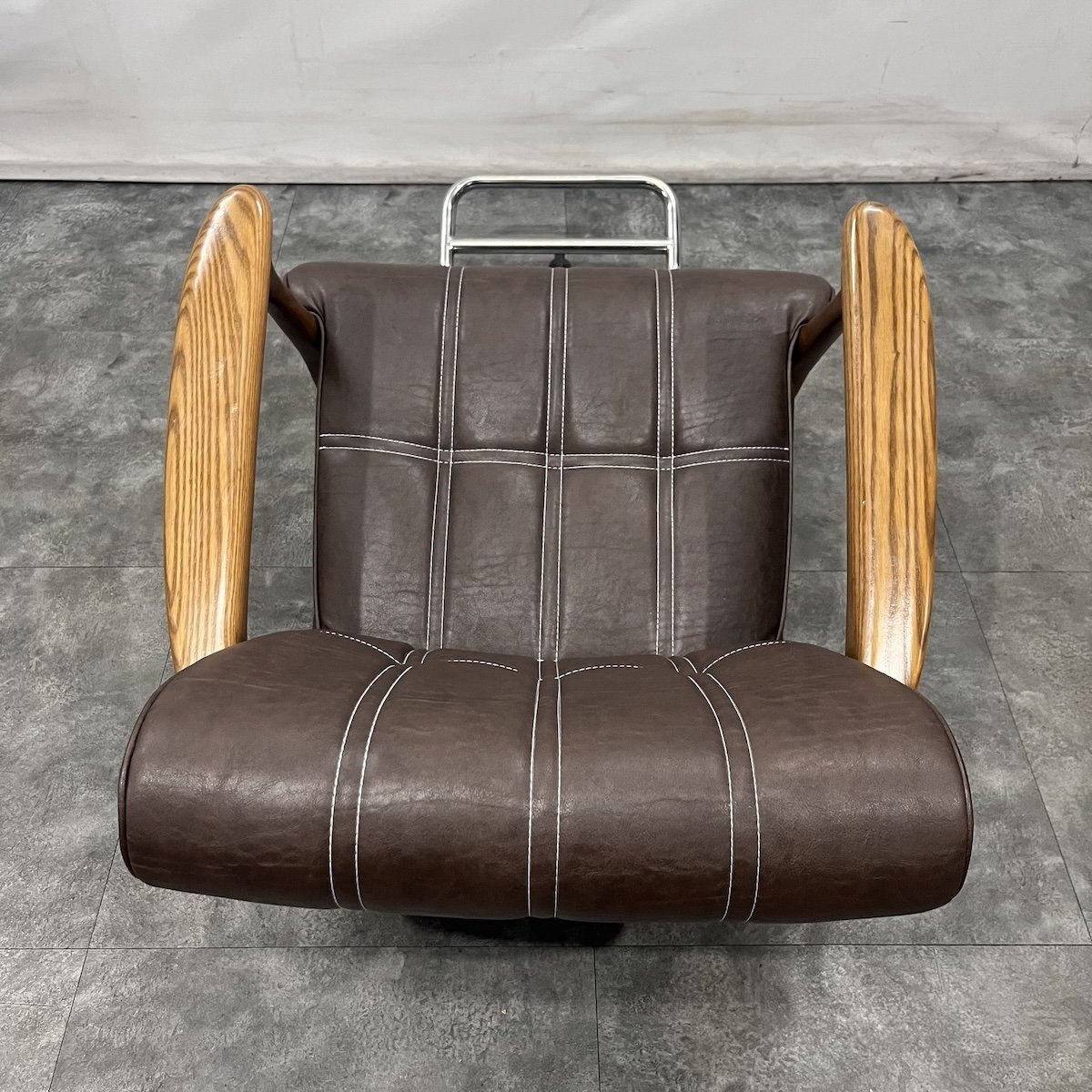【商品状態】必ず詳細写真をご確認いただいてからご購入ください。使用年数なりの使用感がございます。 レザー:国産合皮レザーへ張替済み ひじ(木製)部分:木の欠け ポンプ:付属なし(上部のみの販売) 対応:ビューティガレージ製ベースに適合 ※こちらの商品は肘部分が木製となっているため、商品によって色合いや木目などが異なります。必ず詳細写真をご確認頂いてからご購入ください。 ■全体サイズ:W65 × D104 × H89-105cm