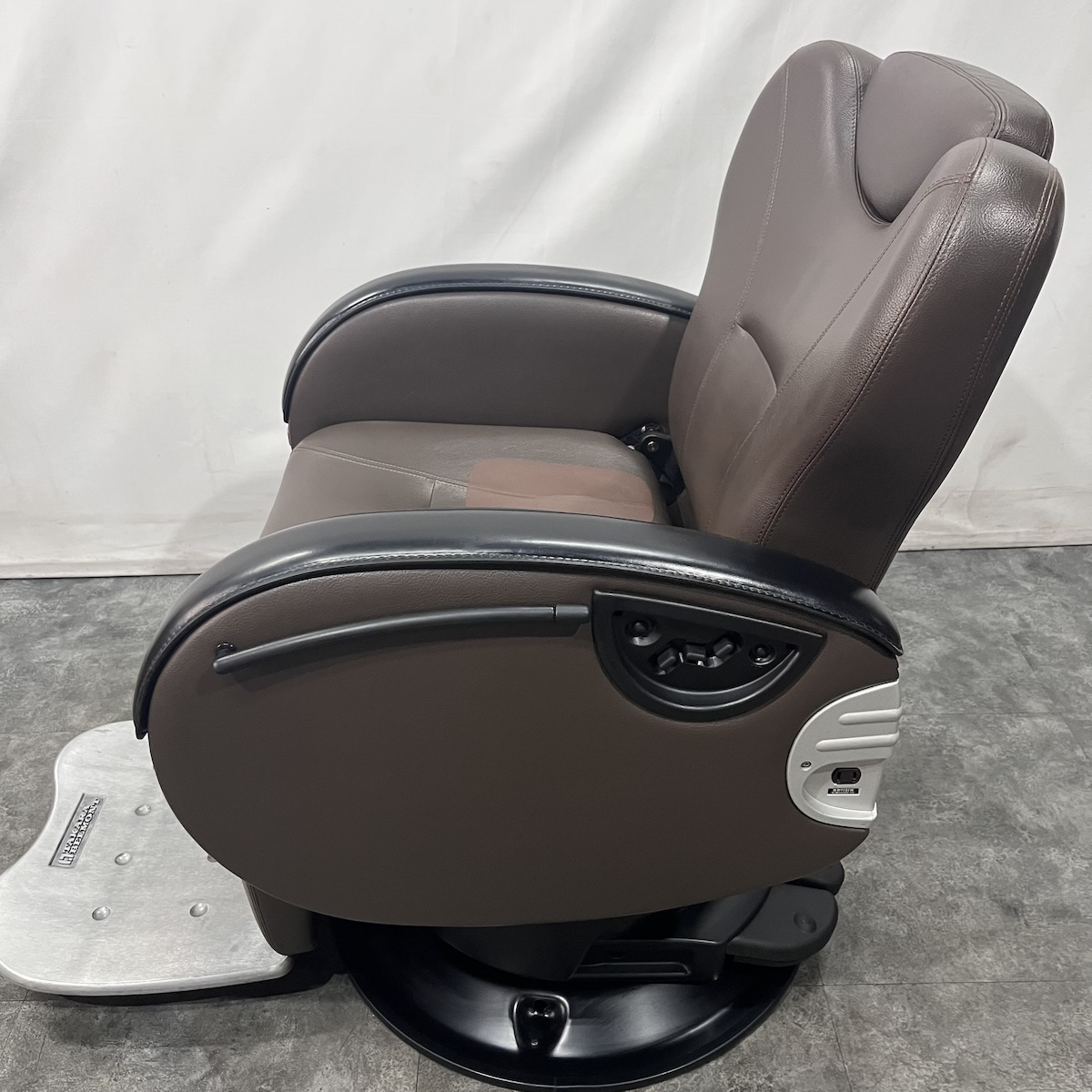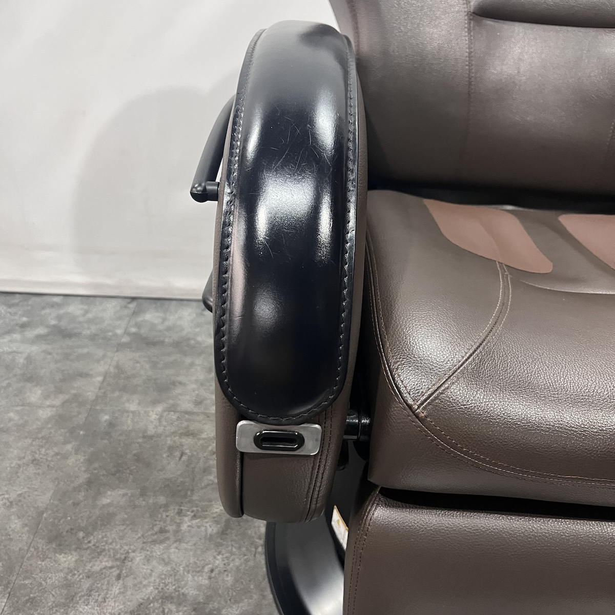 使用年数なりの使用感がございます。レザー部分はお張替えを致しますが、その他の肘部分(スイッチなどの部品・本革部分)やステップ、ベースカバーなどは現状のままとなります。