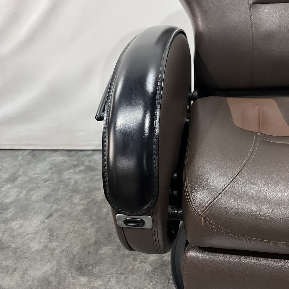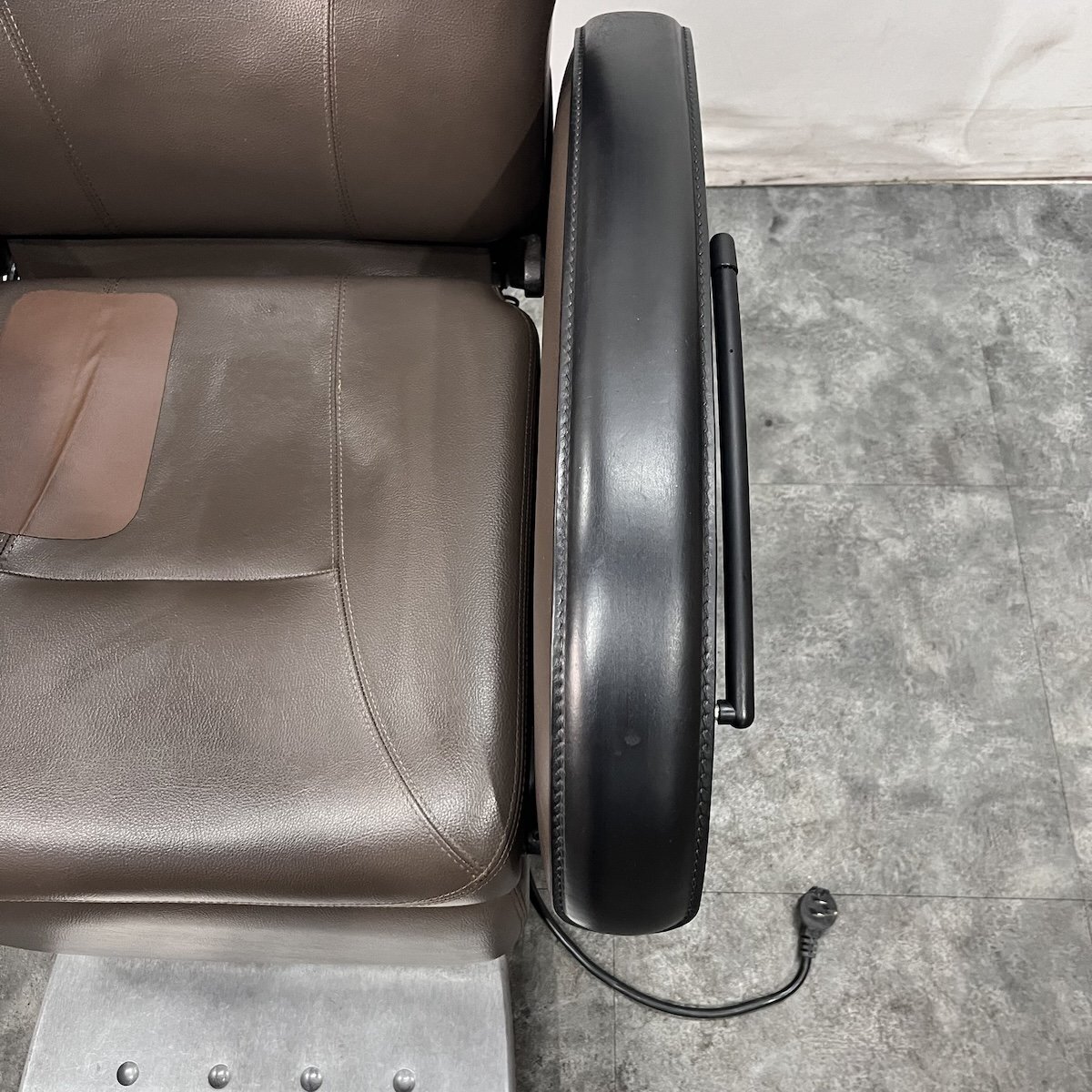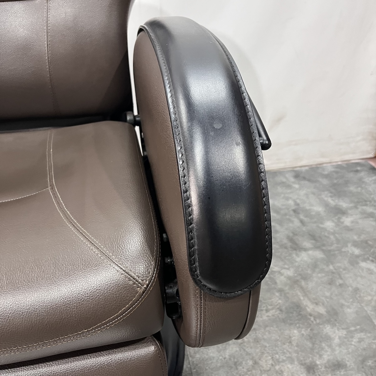 使用年数なりの使用感がございます。レザー部分はお張替えを致しますが、その他の肘部分(スイッチなどの部品・本革部分)やステップ、ベースカバーなどは現状のままとなります。