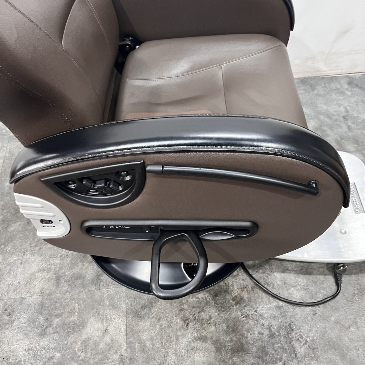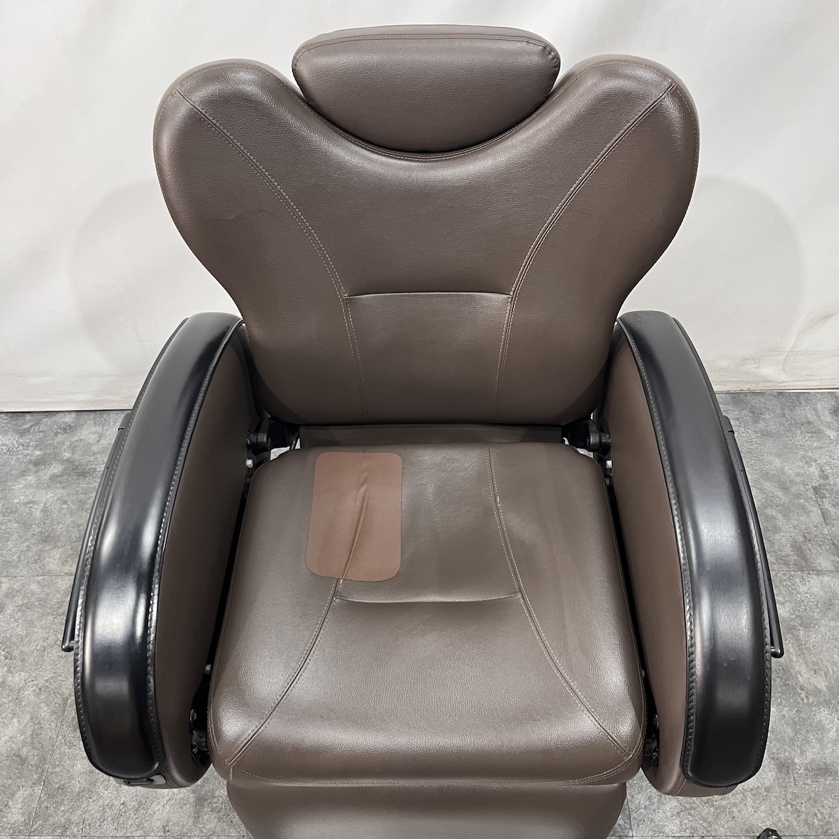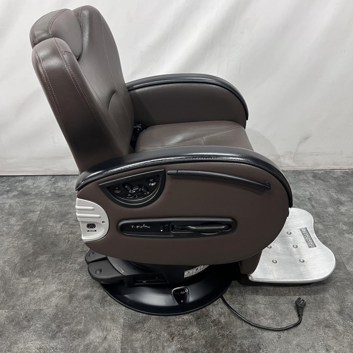 使用年数なりの使用感がございます。レザー部分はお張替えを致しますが、その他の肘部分(スイッチなどの部品・本革部分)やステップ、ベースカバーなどは現状のままとなります。