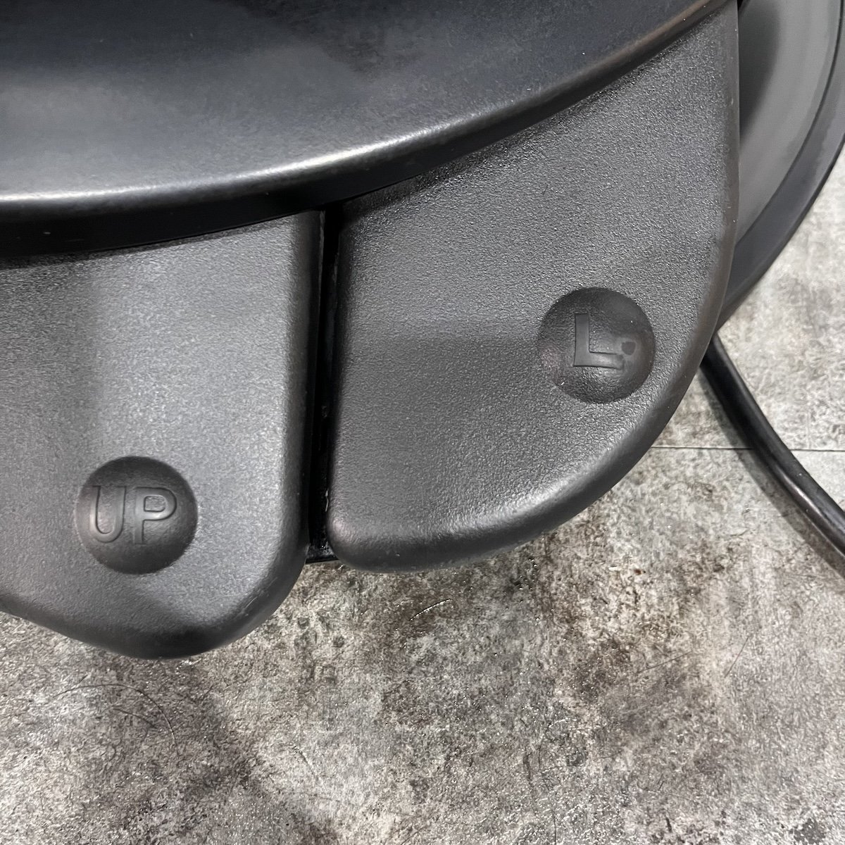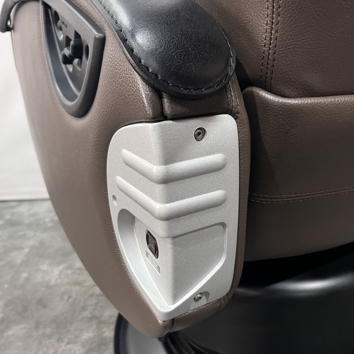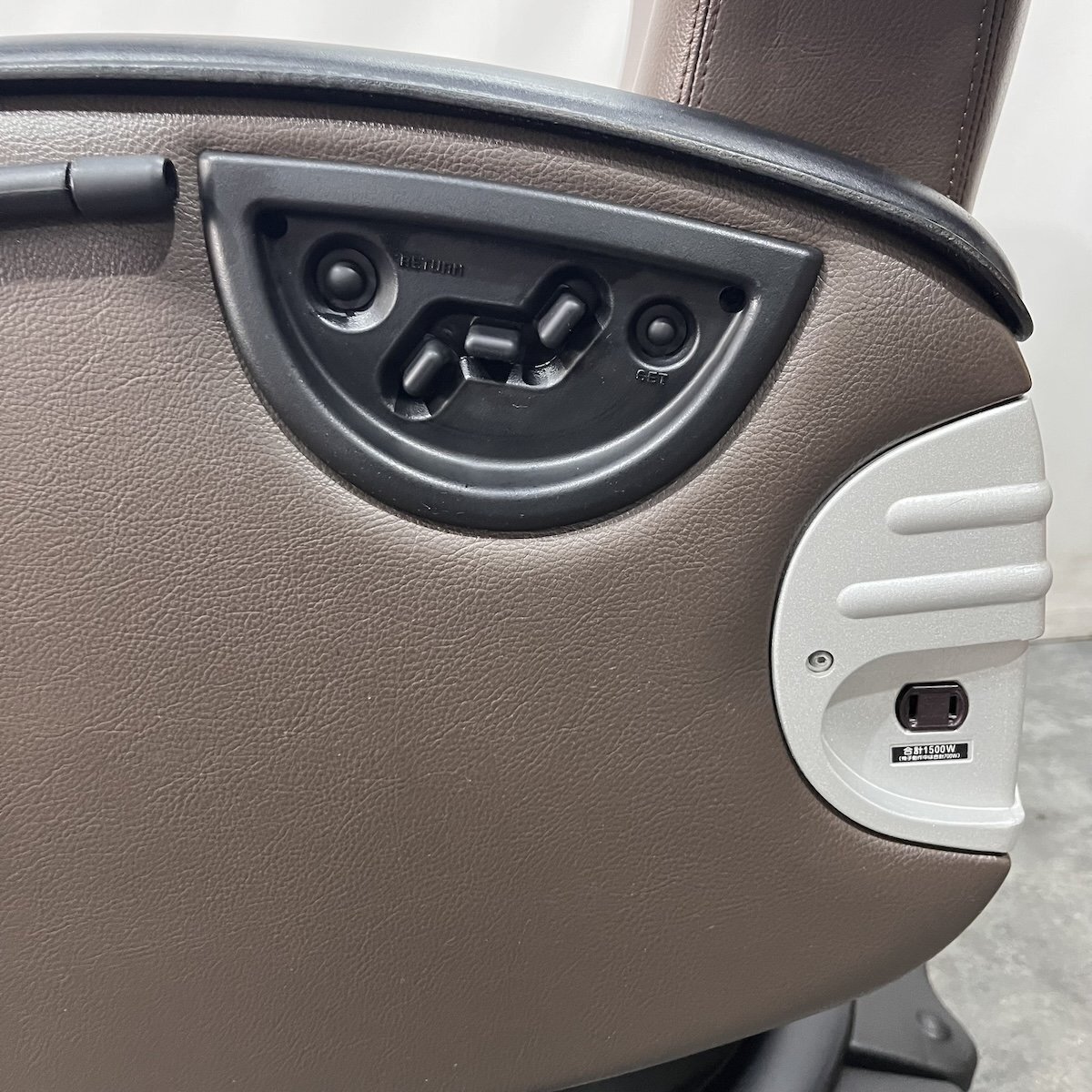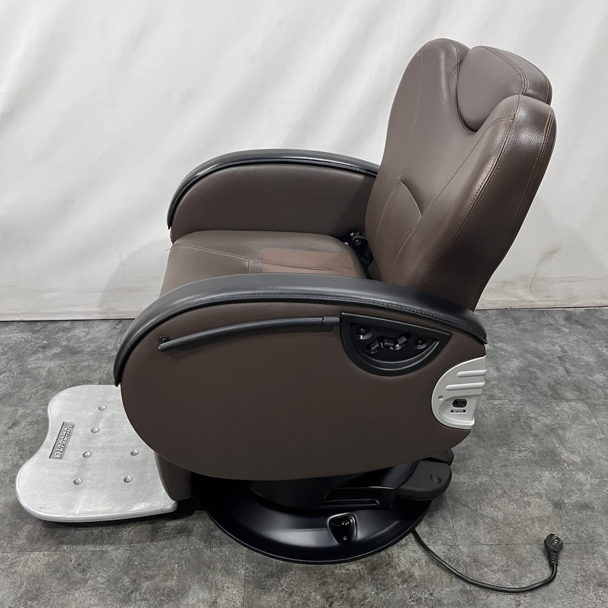 また、回転・固定を片足で簡単・確実に行える電動ロック式。アームレスト部分は本革となっております。