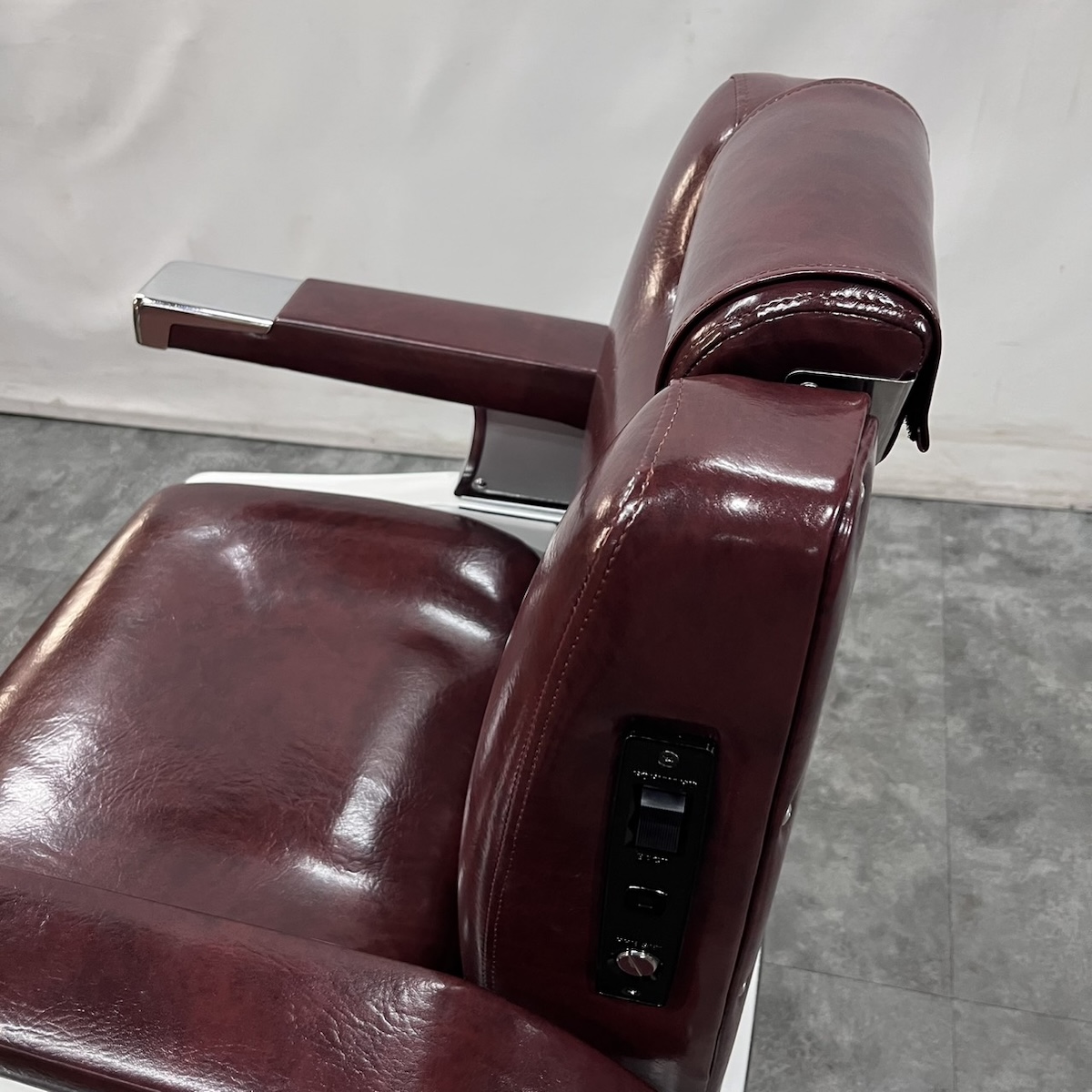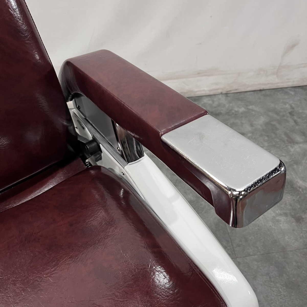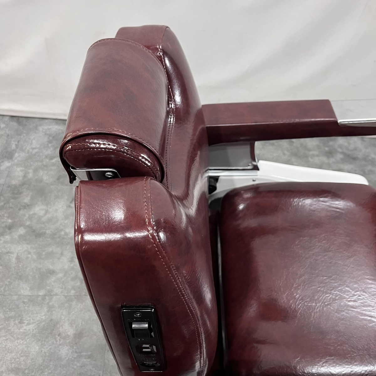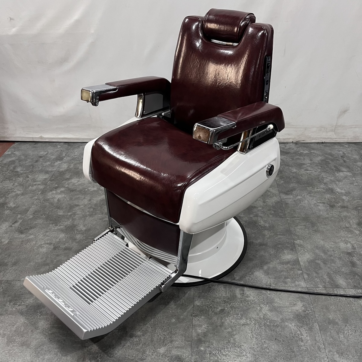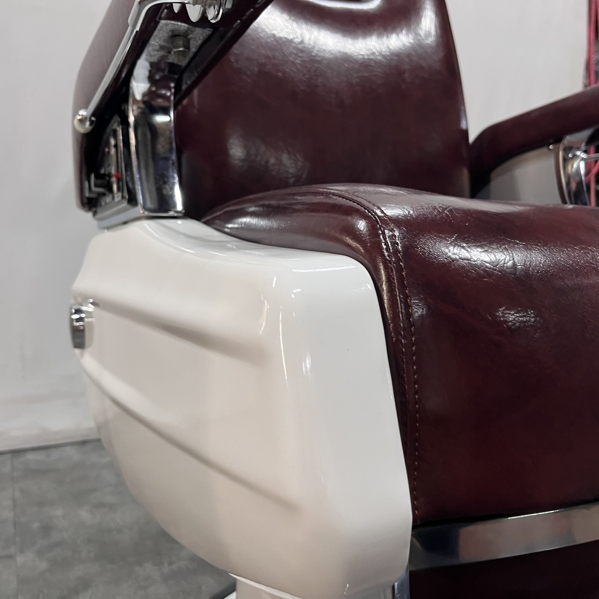 タカラベルモント製 理容椅子 『 679 』入荷しました! ※こちらの商品は、再生品の見本写真となります。(再生品とは、シートの張替え・メッキ部分の再メッキ・塗装部分の再塗装・機械部分のメンテナンスを行った商品です。)ご注文を頂いてから作業に入りますので、お好みのレザーに張り替えることができます。 国産メーカー(シンコー又はサンゲツ)の合皮レザーにてご希望のシートに張り替えます。300色以上の取り扱いがありますので、ご希望の色の系統をお知らせいただけましたらレザーサンプルをご用意いたします。 また、塗装色はアイボリー・白・黒からお選びいただけます。(その他の色については、一度お問い合わせください。) 納期は約3週間かかります。 【送料別途】送料はご地域によりますので、ご連絡ください。