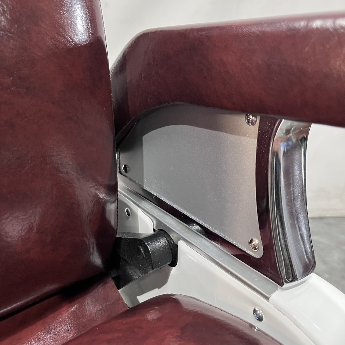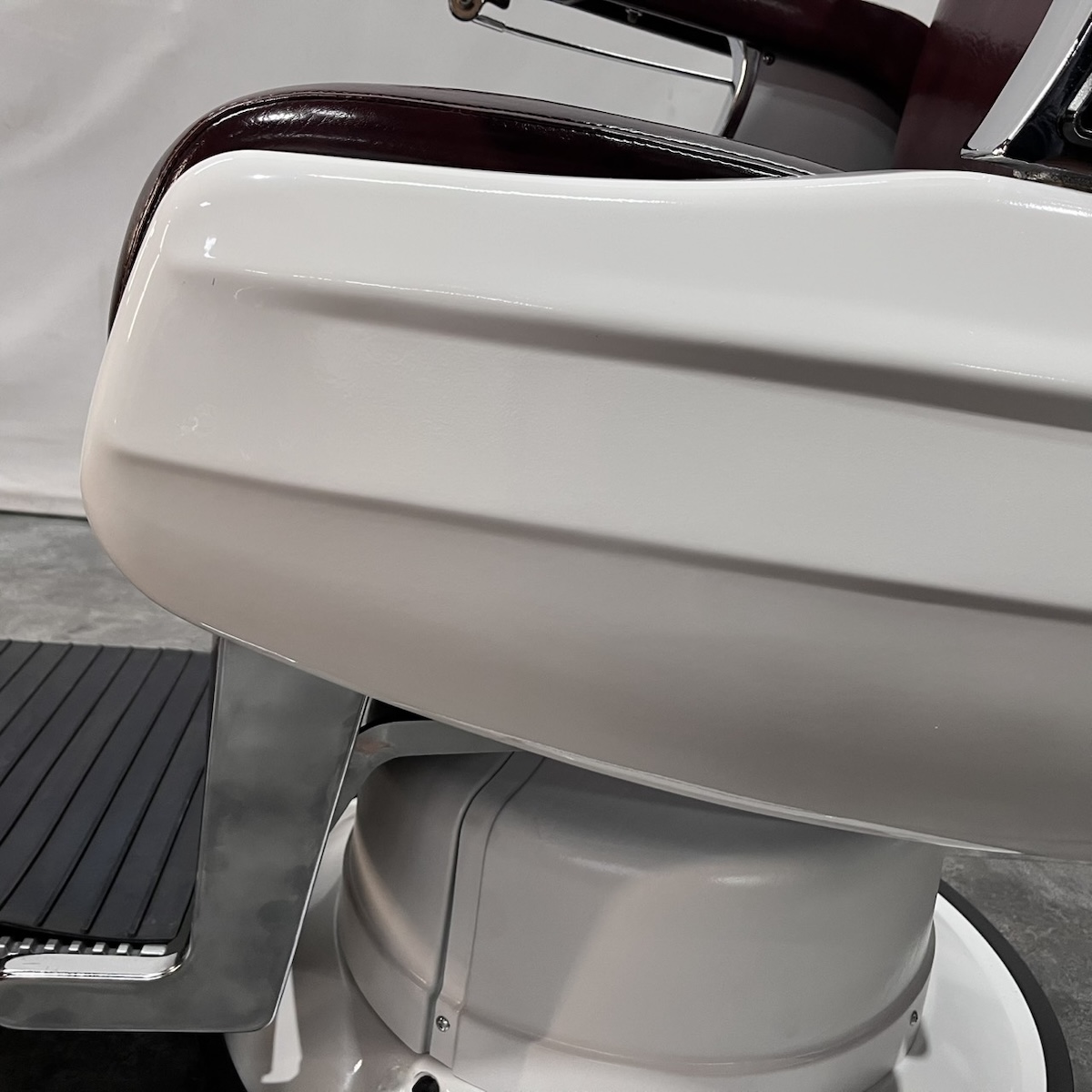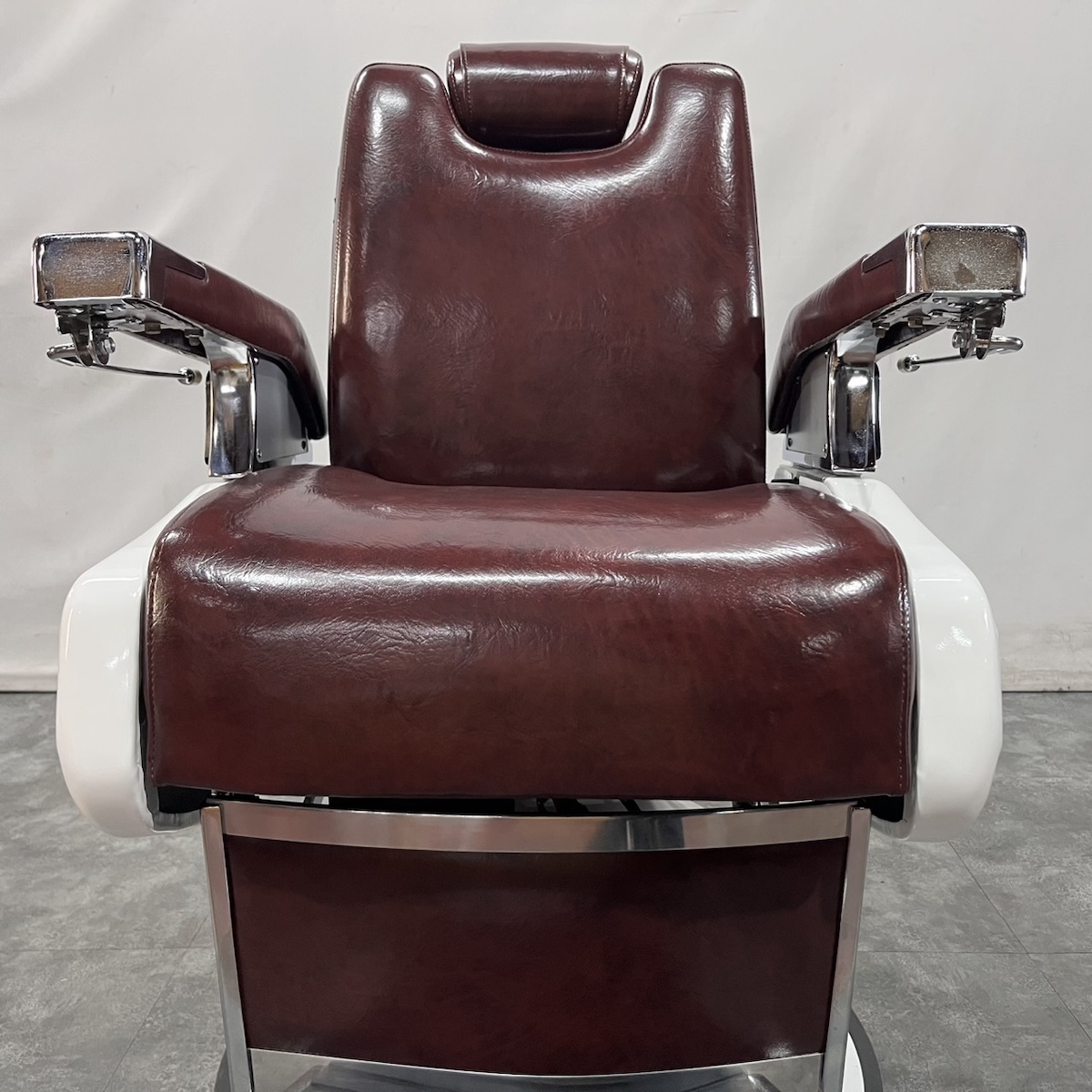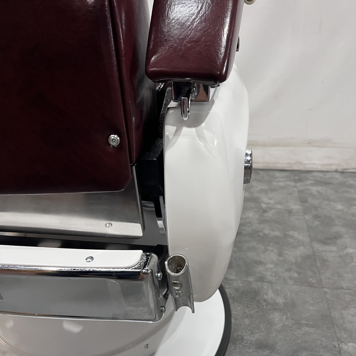 タカラベルモント製 理容椅子 『 679 』入荷しました! ※こちらの商品は、再生品の見本写真となります。(再生品とは、シートの張替え・メッキ部分の再メッキ・塗装部分の再塗装・機械部分のメンテナンスを行った商品です。)ご注文を頂いてから作業に入りますので、お好みのレザーに張り替えることができます。 国産メーカー(シンコー又はサンゲツ)の合皮レザーにてご希望のシートに張り替えます。300色以上の取り扱いがありますので、ご希望の色の系統をお知らせいただけましたらレザーサンプルをご用意いたします。 また、塗装色はアイボリー・白・黒からお選びいただけます。(その他の色については、一度お問い合わせください。) 納期は約3週間かかります。 【送料別途】送料はご地域によりますので、ご連絡ください。