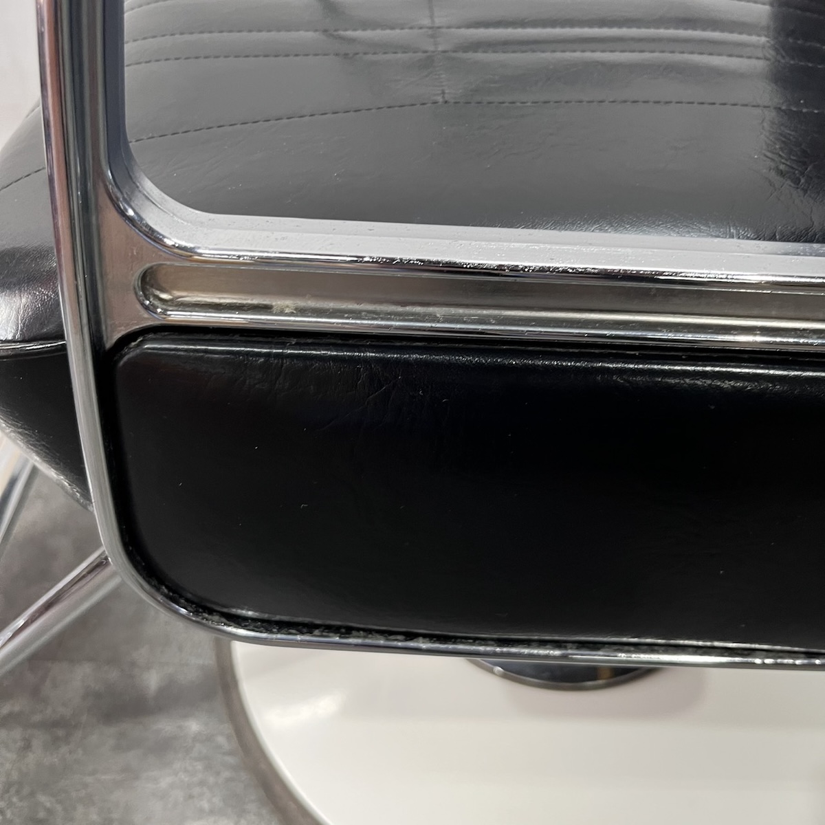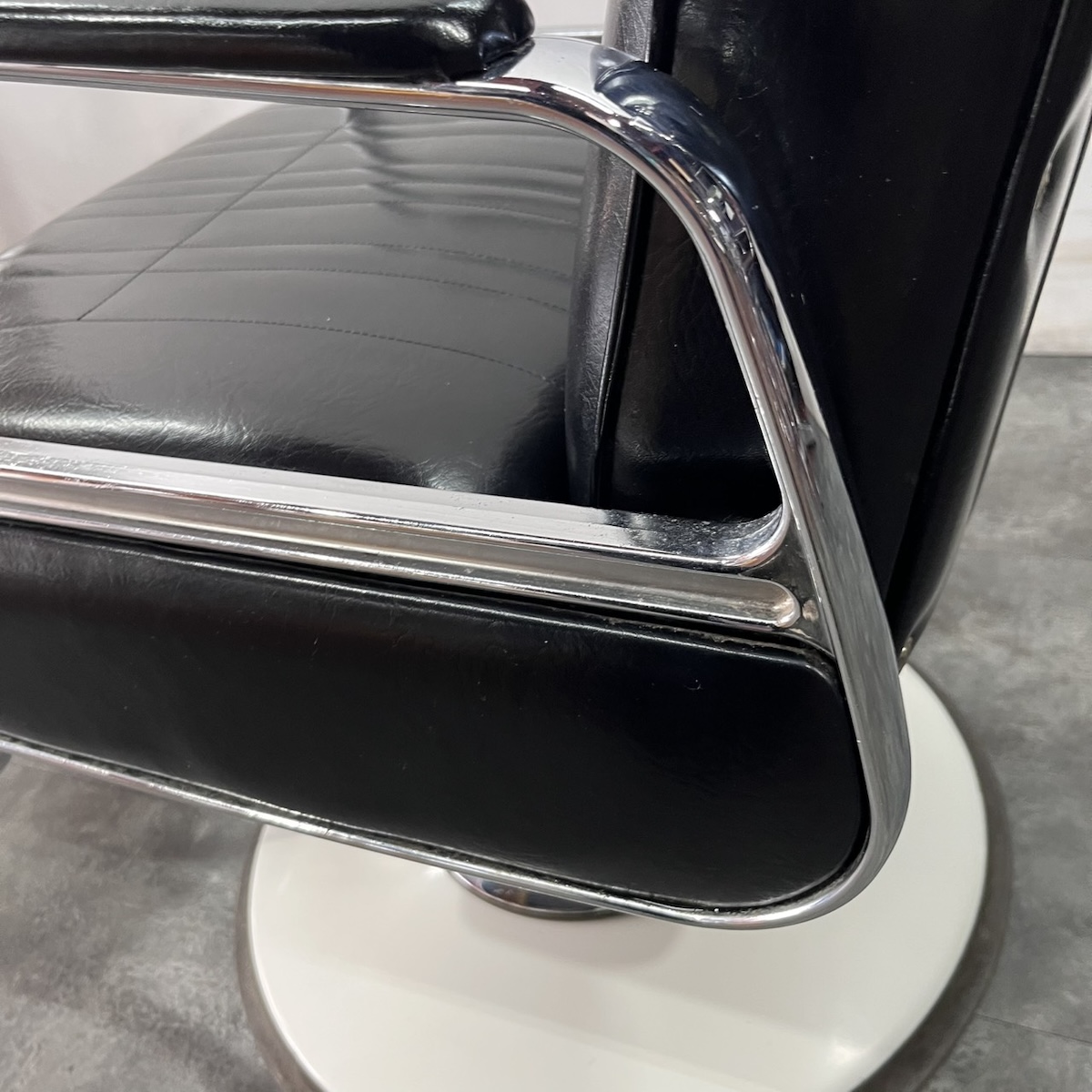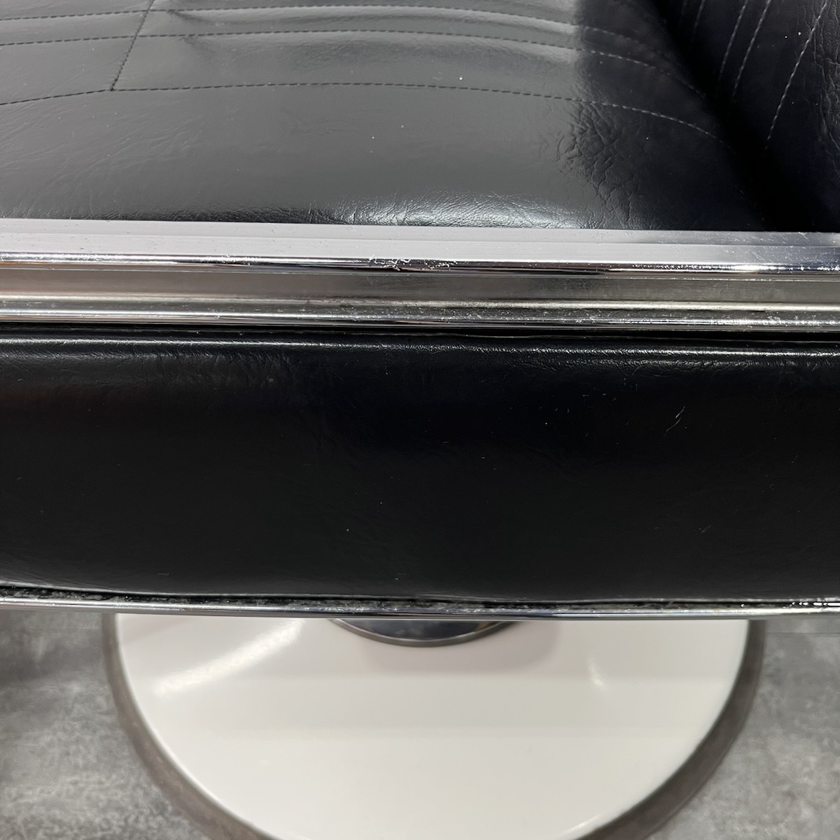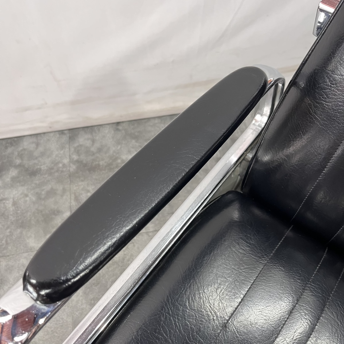 ★こちらの商品は張替品での販売も可能です!現状品の購入をご検討されている方は、詳細まで写真をご確認して頂きますようお願い致します。 (1)中古現状品 ¥24,800-現品の状態での販売となります。 (2)張替品 ¥54,600-国産メーカー(シンコー又はサンゲツ)の合皮レザーにてご希望のシートに張り替えます。300色以上の取り扱いがありますので、ご希望の色の系統をお知らせいただけましたら、そちらの色の系統のレザーサンプルをご用意いたします。 その他部分の塗装などは行いません。 ※納期は約2週間かかります