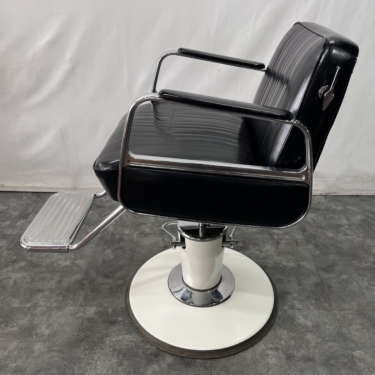 シャンプーチェアのスタンダード。背もたれがやや短めに設計されているため、バックシャンプーがラクに行えます。また、大きめのステップはアジャスターもついて安定性抜群。背もたれはお好みの角度に細かく調節できます。 【商品状態】 使用年数なりの使用感がございます。 必ずお写真にて詳細をご確認して頂きますようお願い致します。 ※ レザー:美品 ※ ベース:全体的に細かいキズあり。一部傷あり。 動作確認済みです。