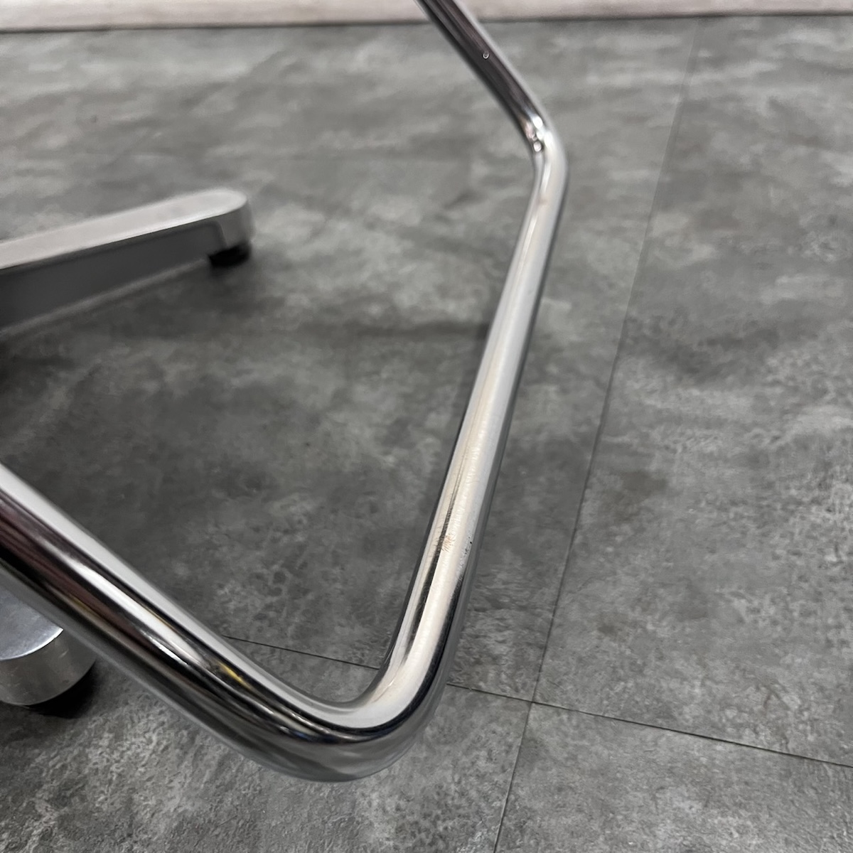 フラット&スクエアなクッションと、太いスチールパイプで構成したフレーム。