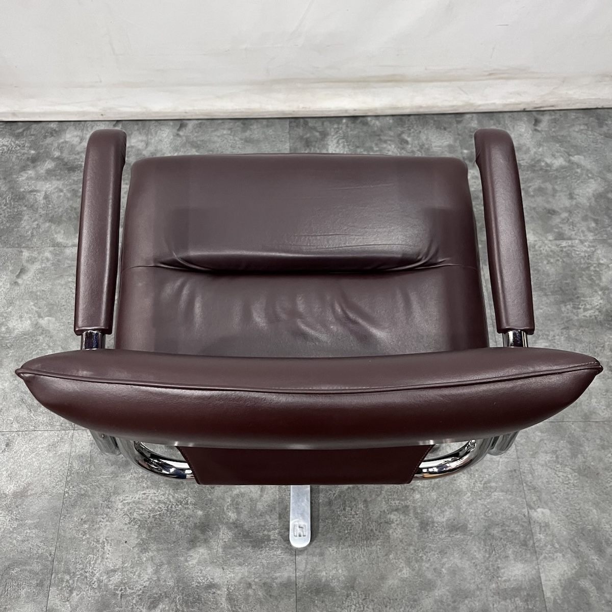 アームと座面・背面は同色の張り地で統一し、マニッシュなイメージに仕上げました。長く愛される名品です。