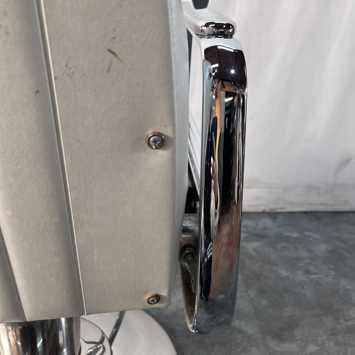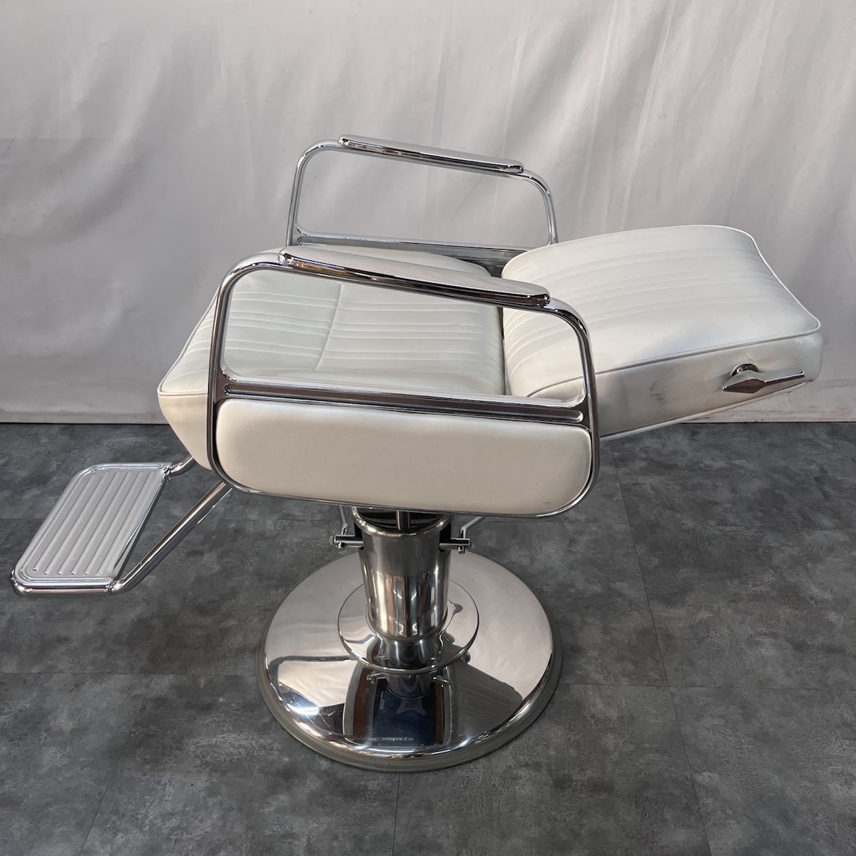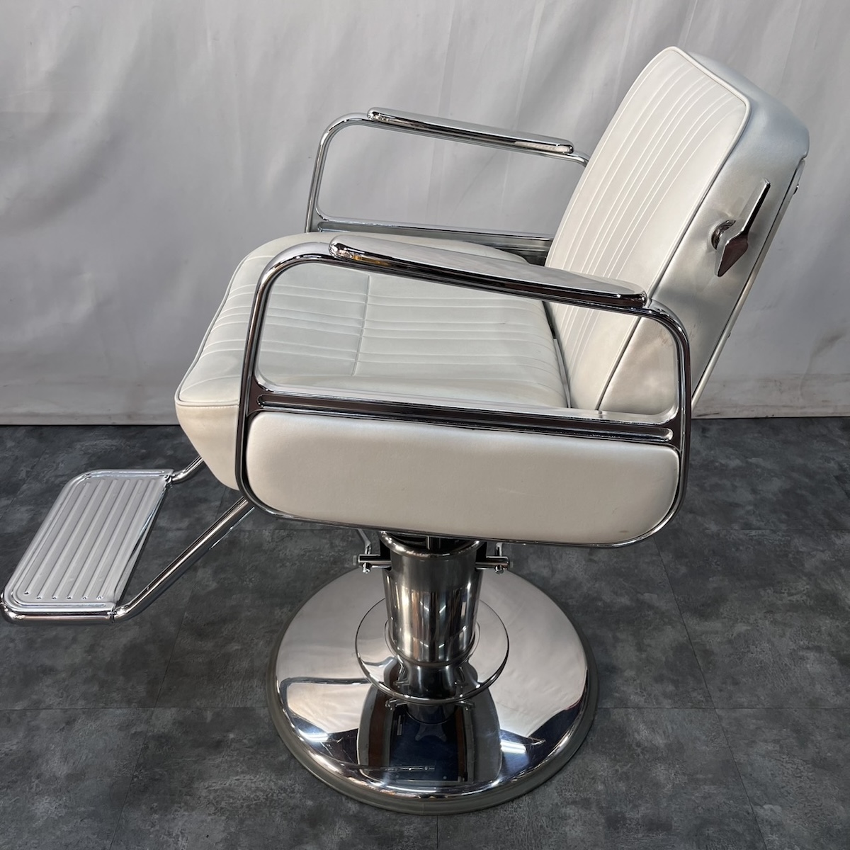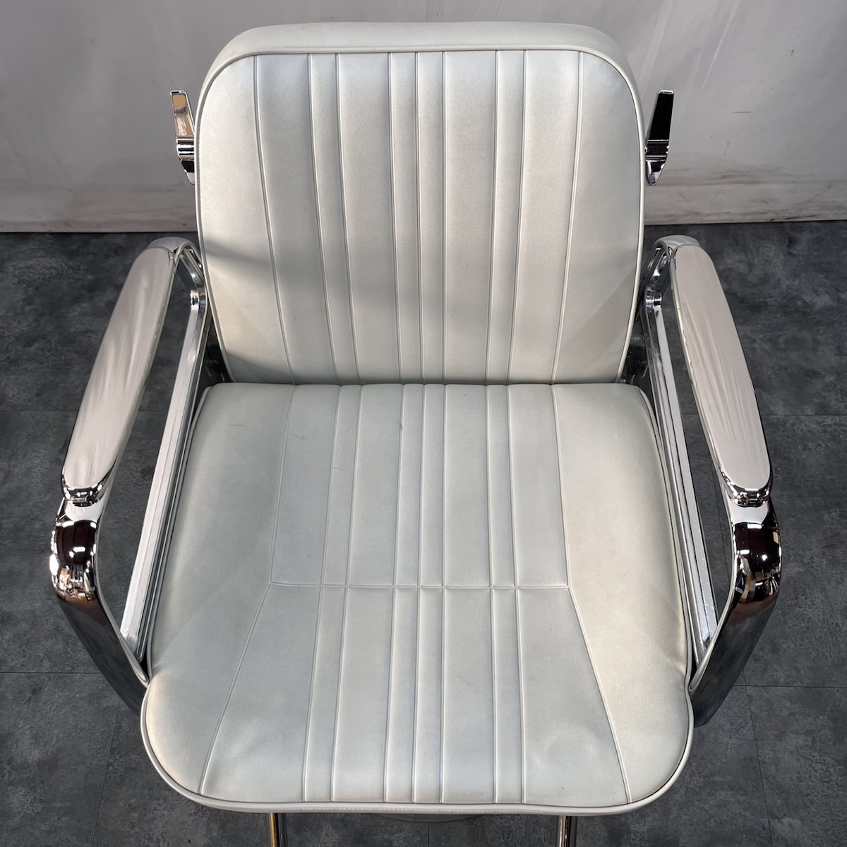 タカラベルモント セットイス『 リクライニングキャデラ 』入荷しました!どっしりとした重量感のあるデザイン、身体をゆったりと受け止めてくれるバケットタイプのシート。そして硬質なアルミフレームの手すり…。古き良きアメリカを想起させるシャンプーチェアです。 ※こちらの商品は、シートの張り替え料金込みの商品です! 国産メーカー(シンコー又はサンゲツ)の合皮レザーにてご希望のシートに張り替えます。 300色以上の取り扱いがありますので、ご希望の色の系統をお知らせいただけましたら、そちらの色の系統のレザーサンプルをご用意いたします。 その他部分の塗装などは行いません。 ※ 納期は約2週間かかります