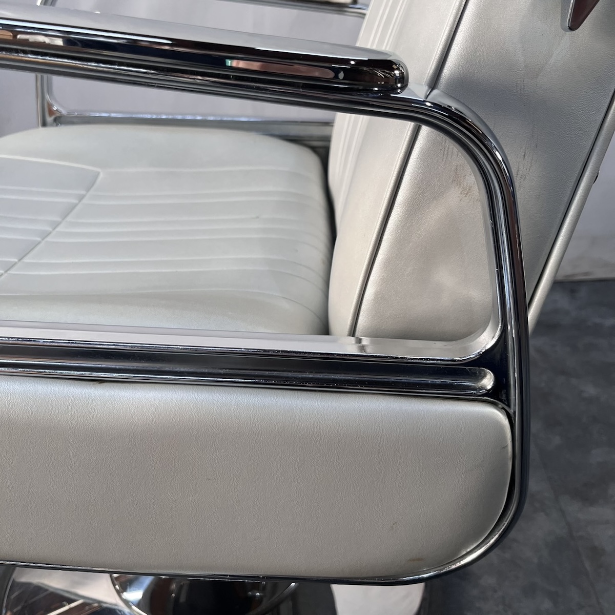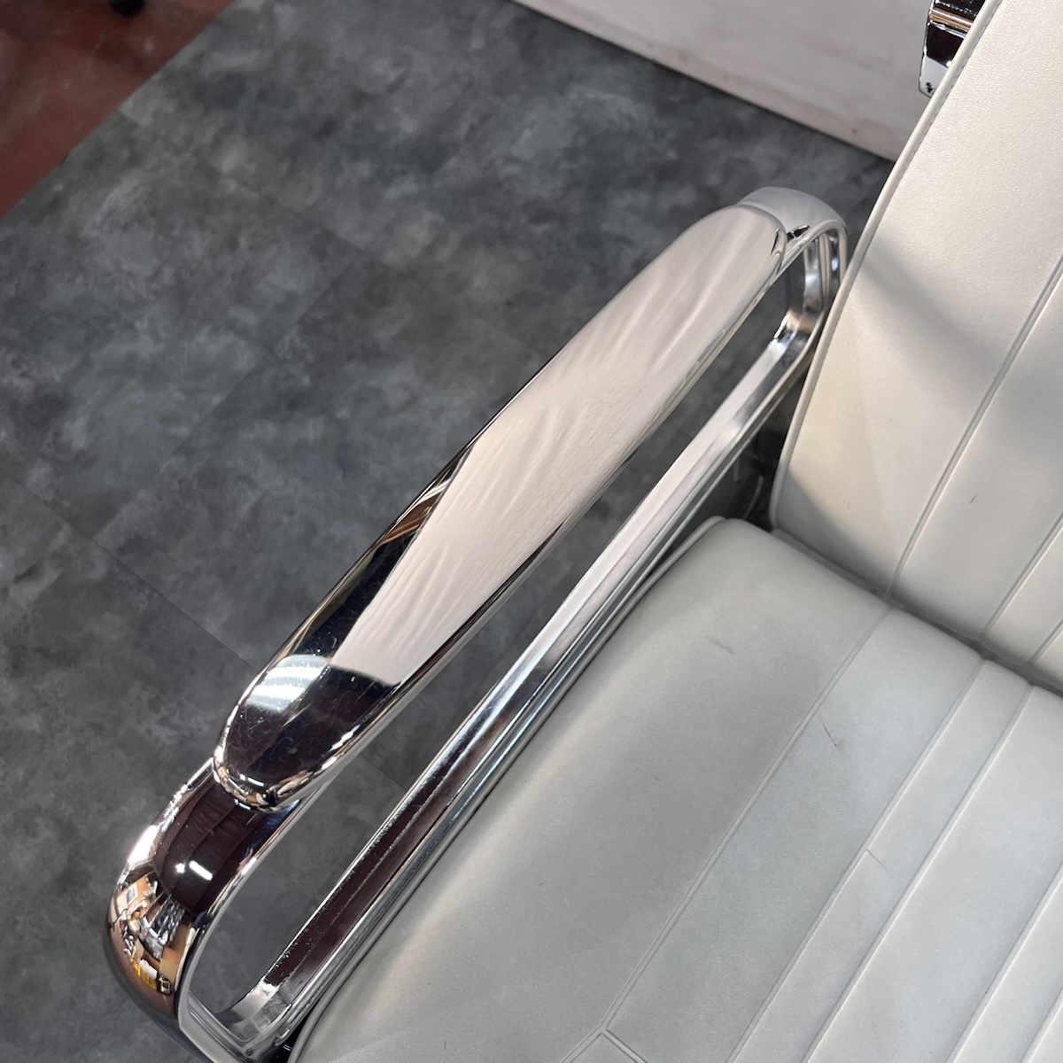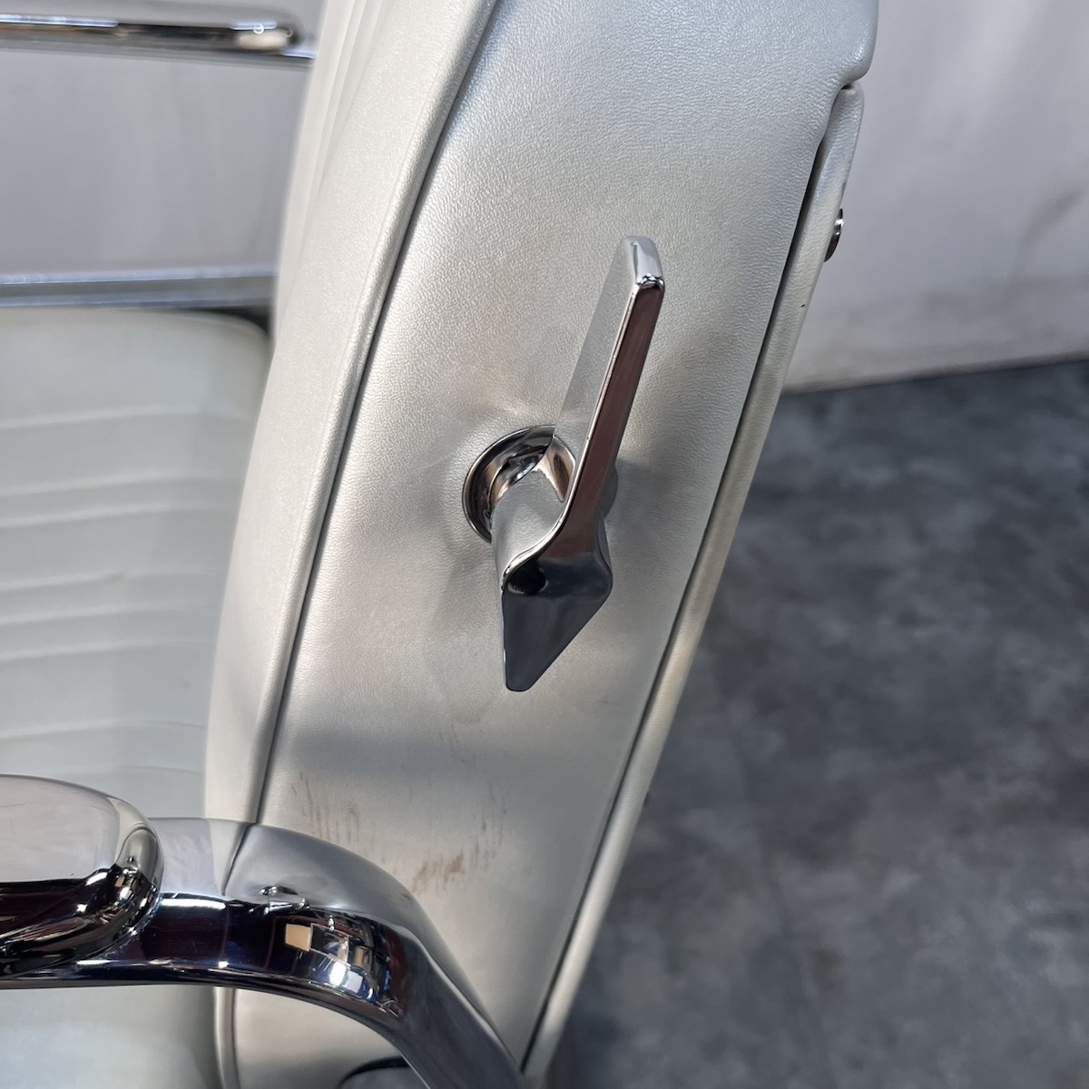 タカラベルモント セットイス『 リクライニングキャデラ 』入荷しました!どっしりとした重量感のあるデザイン、身体をゆったりと受け止めてくれるバケットタイプのシート。そして硬質なアルミフレームの手すり…。古き良きアメリカを想起させるシャンプーチェアです。 ※こちらの商品は、シートの張り替え料金込みの商品です! 国産メーカー(シンコー又はサンゲツ)の合皮レザーにてご希望のシートに張り替えます。 300色以上の取り扱いがありますので、ご希望の色の系統をお知らせいただけましたら、そちらの色の系統のレザーサンプルをご用意いたします。 その他部分の塗装などは行いません。 ※ 納期は約2週間かかります