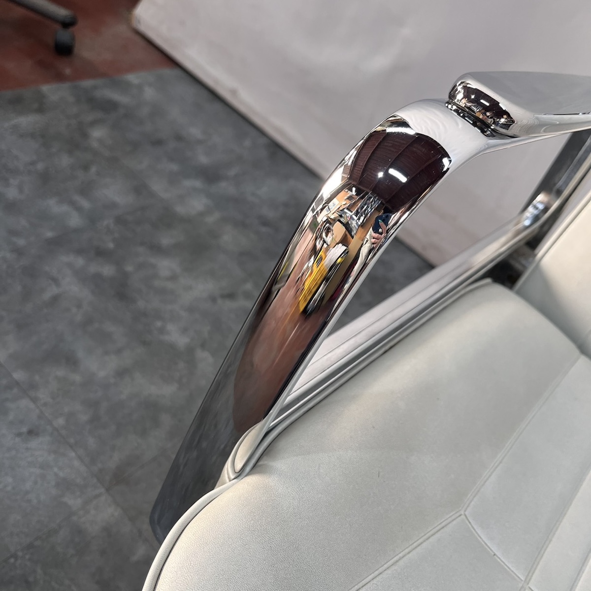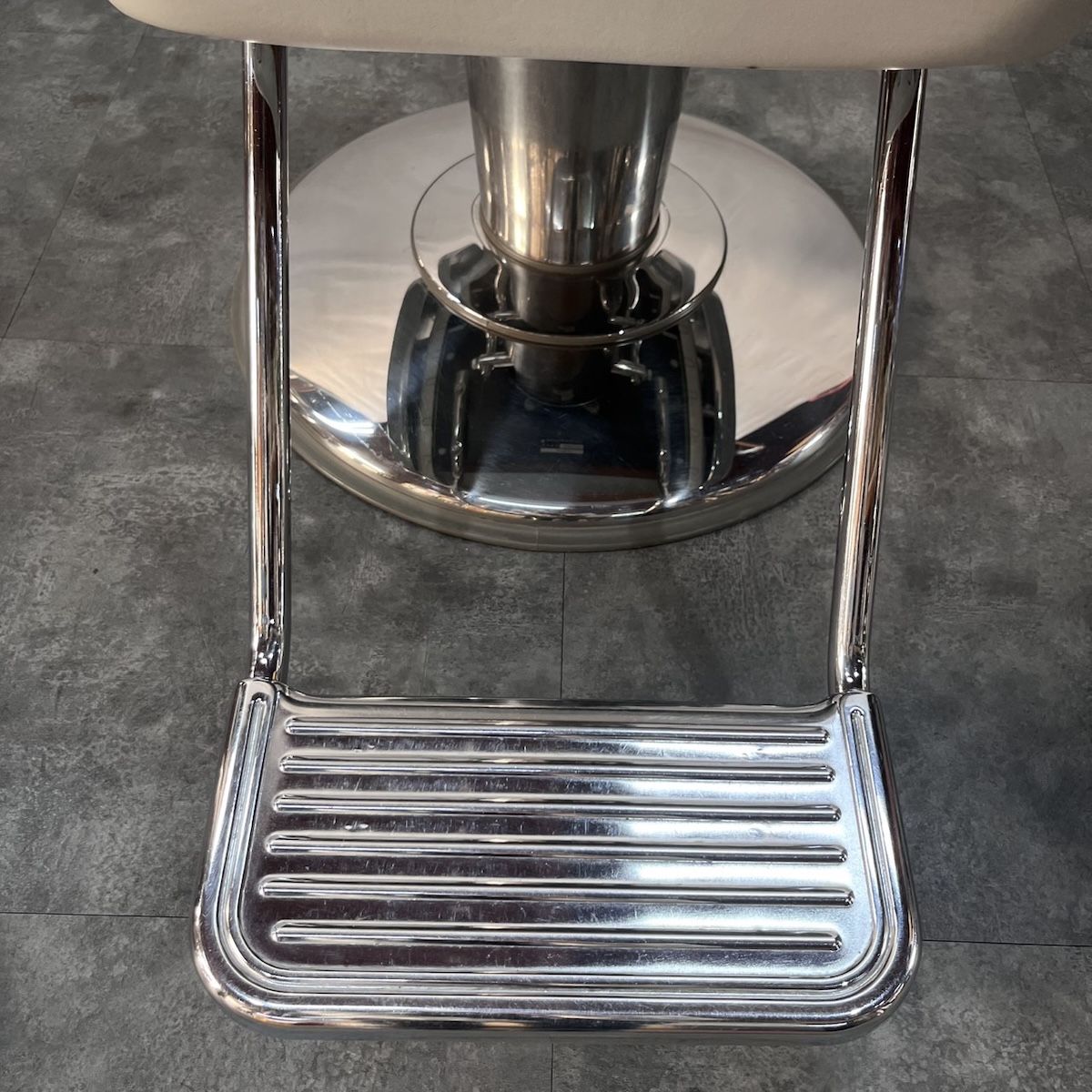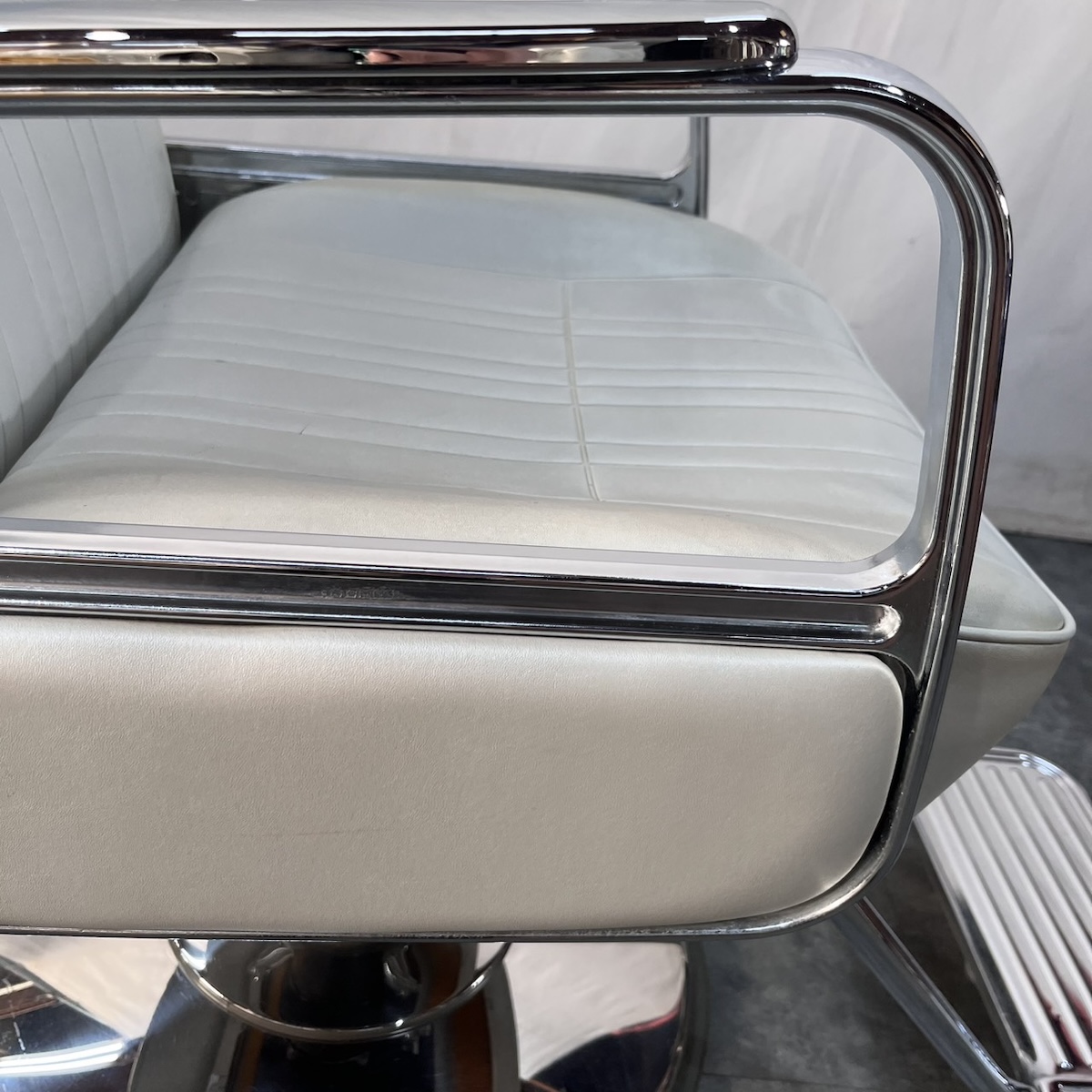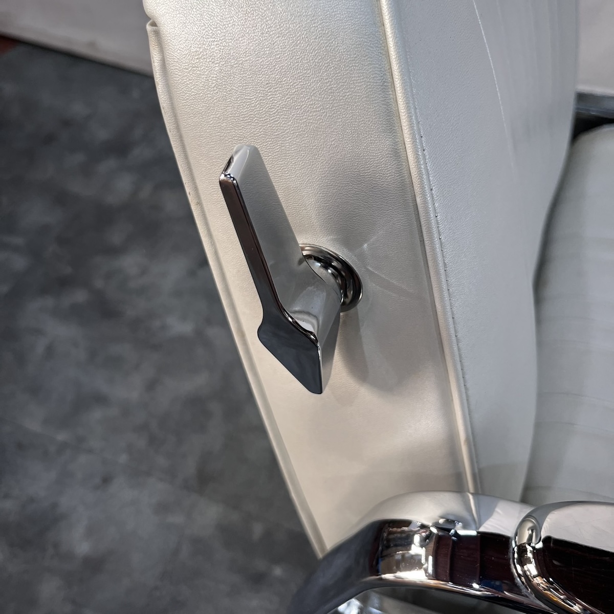 タカラベルモント セットイス『 リクライニングキャデラ 』入荷しました!どっしりとした重量感のあるデザイン、身体をゆったりと受け止めてくれるバケットタイプのシート。そして硬質なアルミフレームの手すり…。古き良きアメリカを想起させるシャンプーチェアです。 ※こちらの商品は、シートの張り替え料金込みの商品です! 国産メーカー(シンコー又はサンゲツ)の合皮レザーにてご希望のシートに張り替えます。 300色以上の取り扱いがありますので、ご希望の色の系統をお知らせいただけましたら、そちらの色の系統のレザーサンプルをご用意いたします。 その他部分の塗装などは行いません。 ※ 納期は約2週間かかります